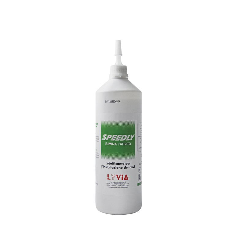 SPEEDLY is able to remove 70% friction and also is oil-free, does not stain and after drying it coats the cable, thanks to its molecular composition, with a protective film thus preventing aggression from corrosive agents and preserving from ageing, both plastic and rubber cables.