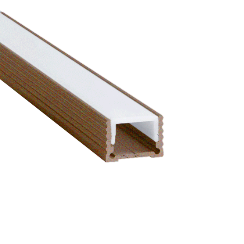 Profilo in alluminio con finitura effetto Corten, per montaggio superficiale.